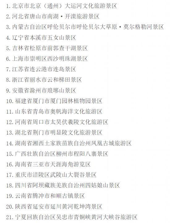 长征娱乐:国家5A级旅游景区新增21家